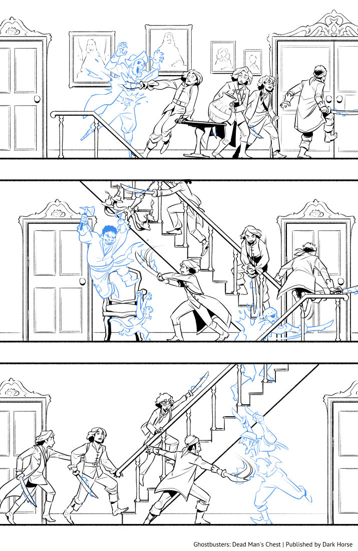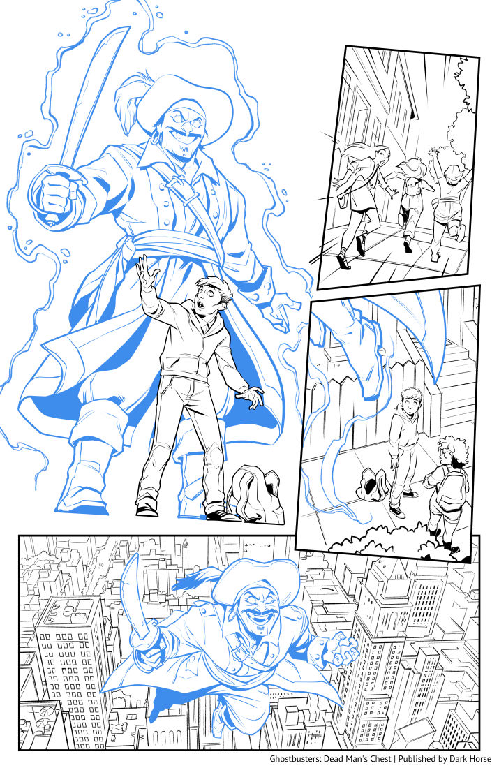 Line art for a 4-issue mini-series published by Dark Horse. Written by David M. Booher, with colours by Cris Peter and letters by Jimmy Betancourt